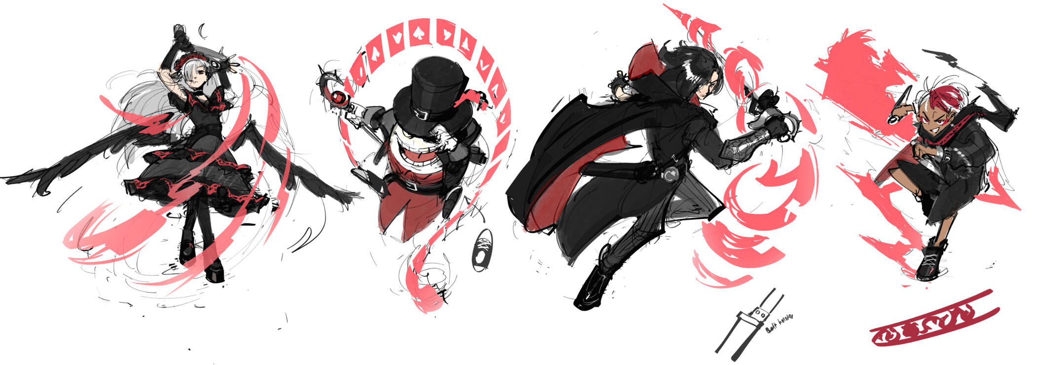 Regalia of Ruin or "RoR" for short is a set of characters made for an IP (Intellectual Property) class which I also featured during my graduation exhibition. Could they be classified as OC's with an extra step? Their inspiration is groups or organizations of evildoers found throughout media, mainly around the fantasy and anime genre! I'm particularly fond of how they came out! They're names are as follow (left to right); Klinn, Madeline, Humphrey and Jaxx. Perhaps they might show up in my future projects one day!